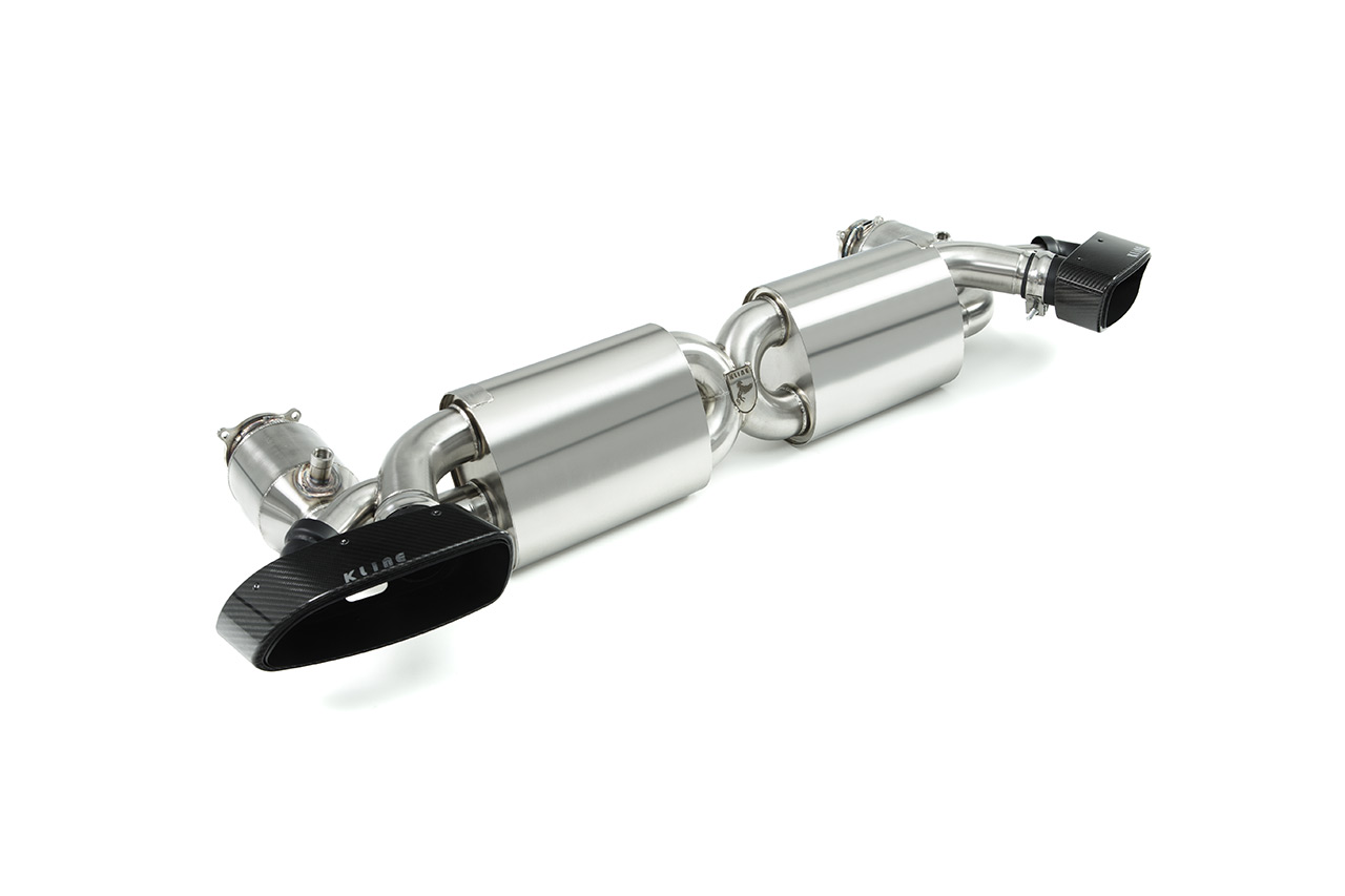 The Porsche 992 carrera. Progressive yet retro styling cues, and a twin turbo flat 6 producing 380hp, the 992 is a striking and powerful machine. The exhaust however, stifled by manufacturer and emissions restrictions, is somewhat lackluster. Here at kline, we are experts in turning dull turbo sounds into an exotic supercar wail.